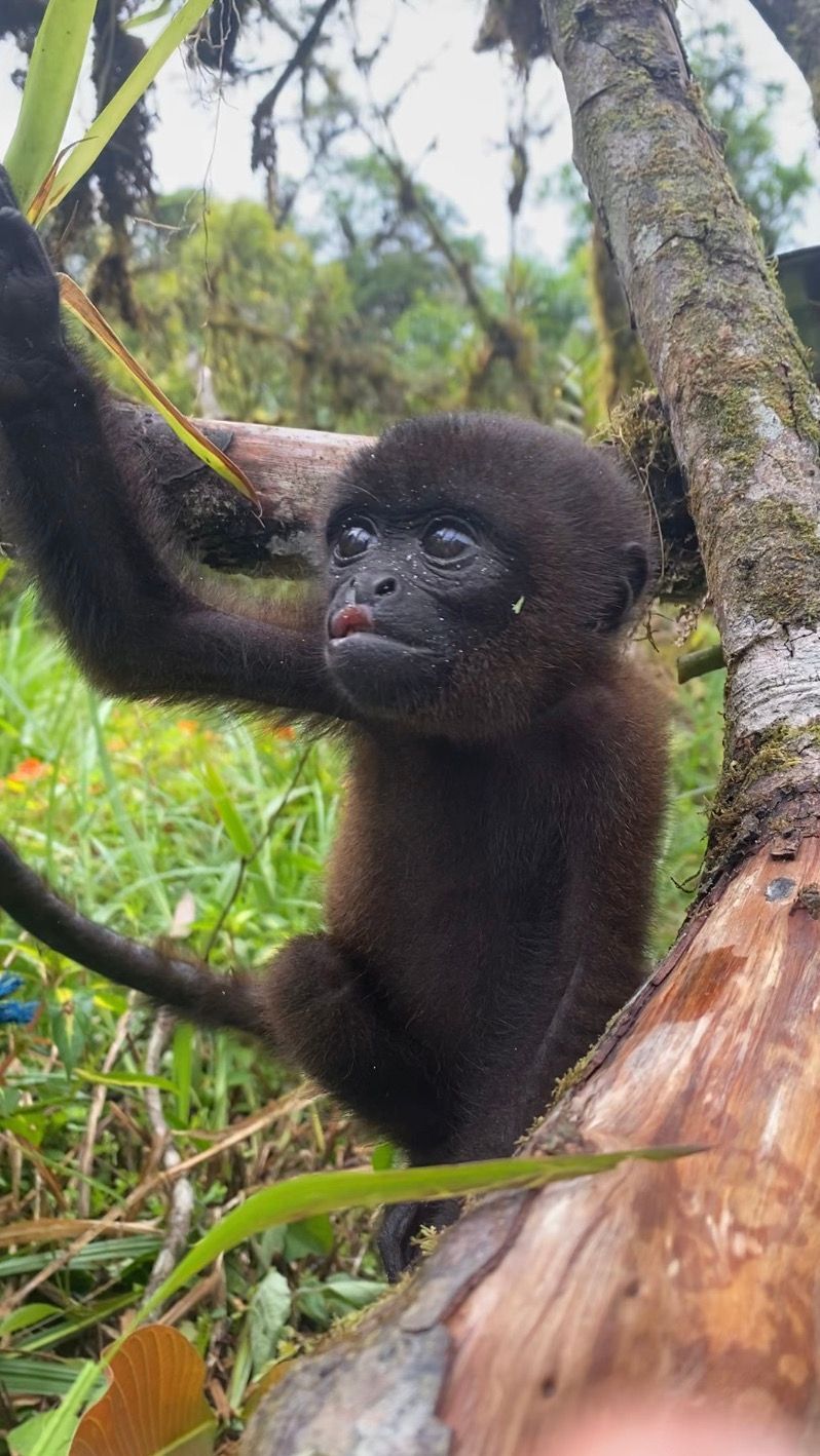 Shimi's personality started to shine through shortly after, as well as beginning to grow stronger and more confident. Almost a year later, Shimi was integrated in a larger juvenile woolly monkey group, with the aim that one day she will be released with them.